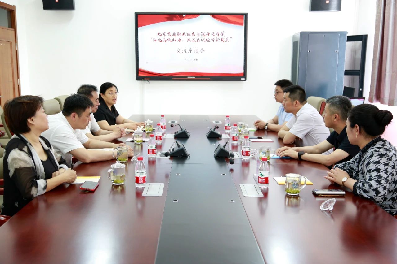 接下來,校地雙方領導進行座談交流。羅春紅副院長介紹了學院概況、院系設置及專業建設情況。雙方對“深化高校助力,共謀區域經濟新發展”形成高度共識,同時對高校文化助力模式等問題進行了深入地探討交流。