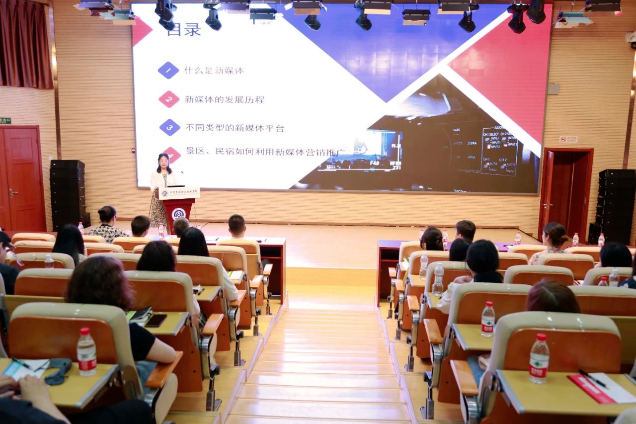 高潤副教授從“什么是新媒體”、“新媒體的發展歷程”、“不同平臺的特點分析”和“景區民宿如何利用新媒體營銷推廣”四個方面展開了培訓。并帶領學員完成了小視頻剪輯、字幕匹配、創作腳本等實操項目。通過理論和實操相結合,學員們對于新媒體的認知和應用都有了顯著的提升。