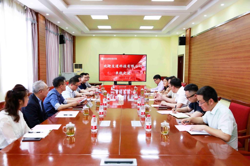 參觀后,學院與友道科技有限公司開展校企合作交流座談。會議由李大泳副院長主持。雙方對校企合作互利共贏有高度共識,對未來合作領域和相關問題進行了深入地探討交流。