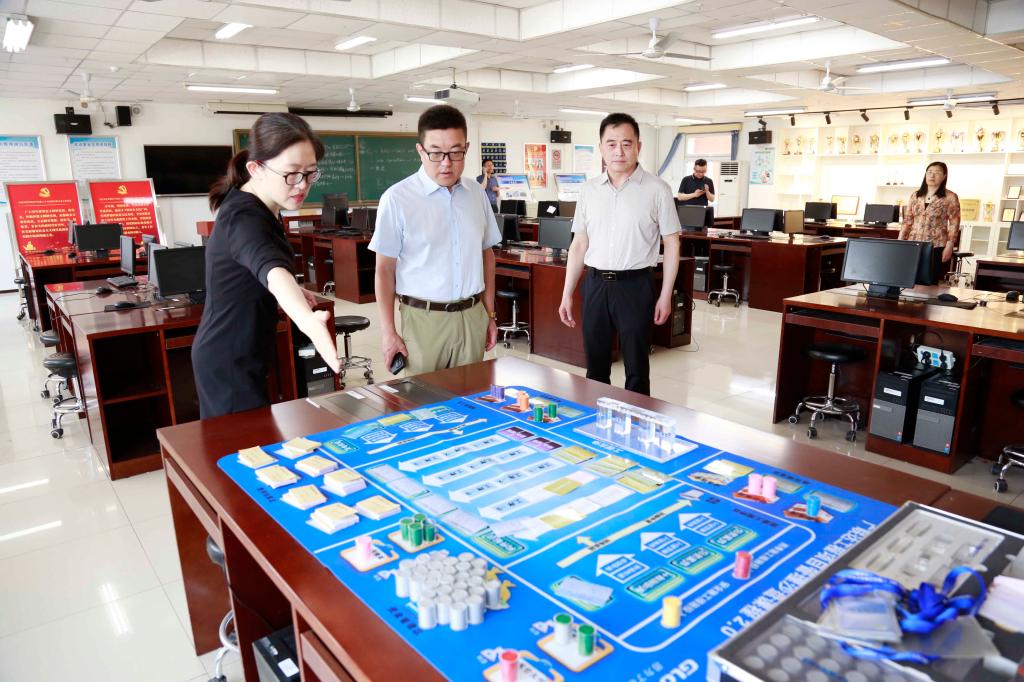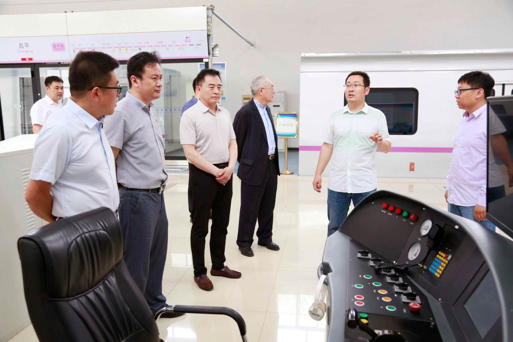 來訪的一行人參觀了學院數字藝術實訓室、京張高鐵沙盤實訓室、工程造價信息化綜合實訓室、無人機系統工程師實訓中心、城市軌道交通沙盤中心、軌道交通實訓中心等實訓基地,了解學院各專業建設、實訓場地、設備設施、教學培訓等情況。