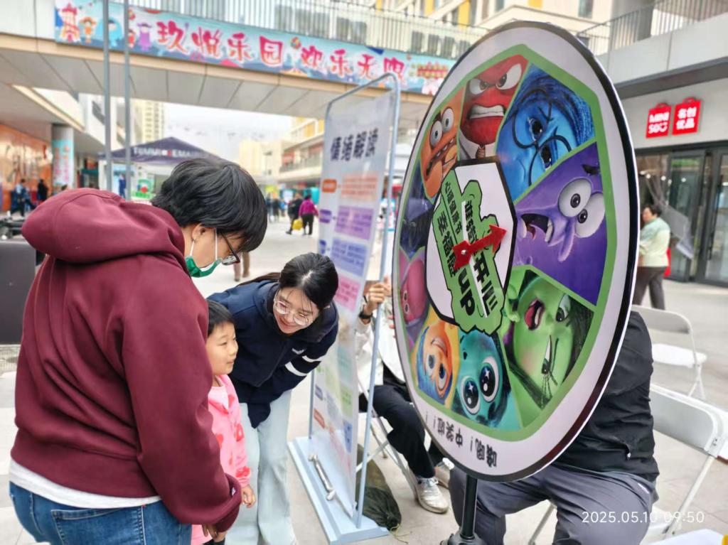 心理健康協(xié)會設(shè)立的情緒解答展臺成為活動中的一抹溫暖亮色。考慮到小朋友們的參與需求,心理健康教育中心老師及心理健康協(xié)會的志愿者設(shè)計了一系列趣味游戲,如情緒轉(zhuǎn)盤認知、表情模仿猜情緒等。小朋友們踴躍參與,在游戲過程中,師生們引導(dǎo)他們認識不同的情緒,學(xué)會正確表達和調(diào)節(jié)自己的心情,同時幫助家長更好地關(guān)注孩子心理健康,促進親子間的理解與溝通。