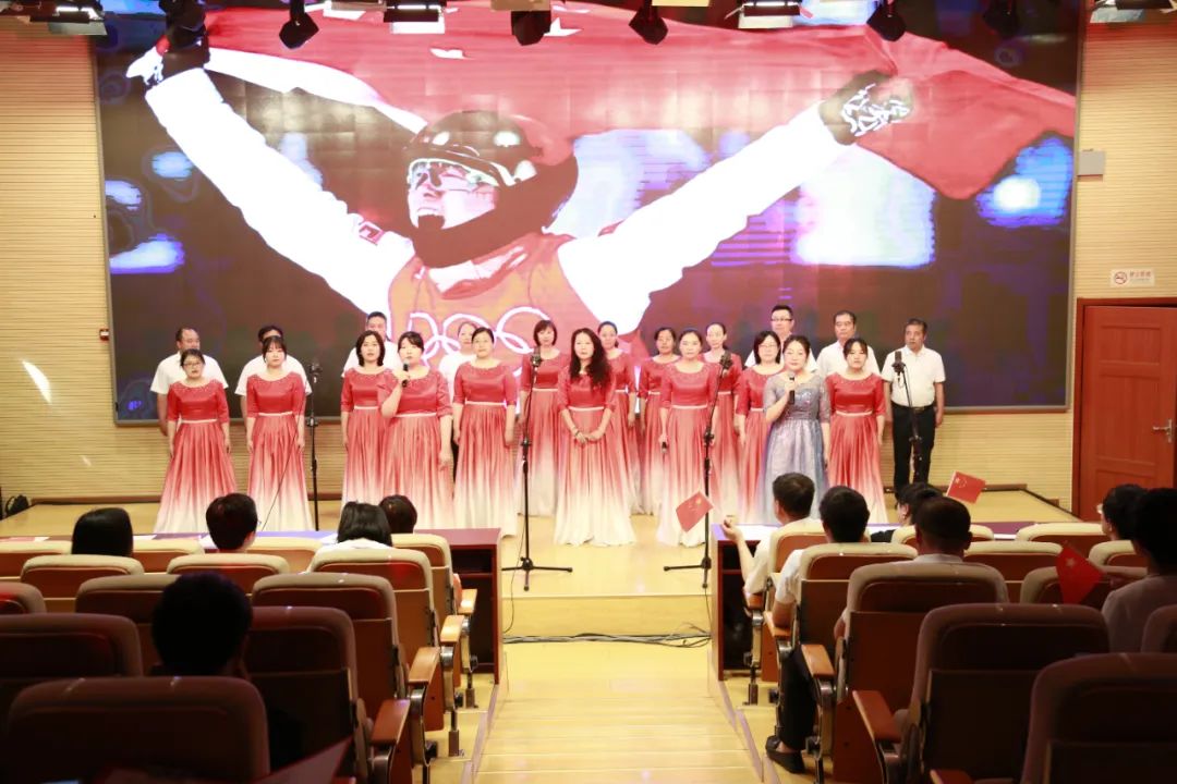 教務處和管理系合唱《紅旗飄飄》。