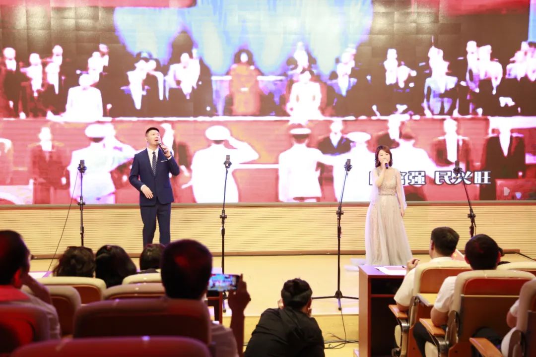 風雪擋不住你的腳步,苦難不曾讓你停住,百年的滄桑被你深藏,擦干眼淚繼續實現夢想——學工系統黃亞楠老師、任鶴飛先生男女對唱《國富民興》。
