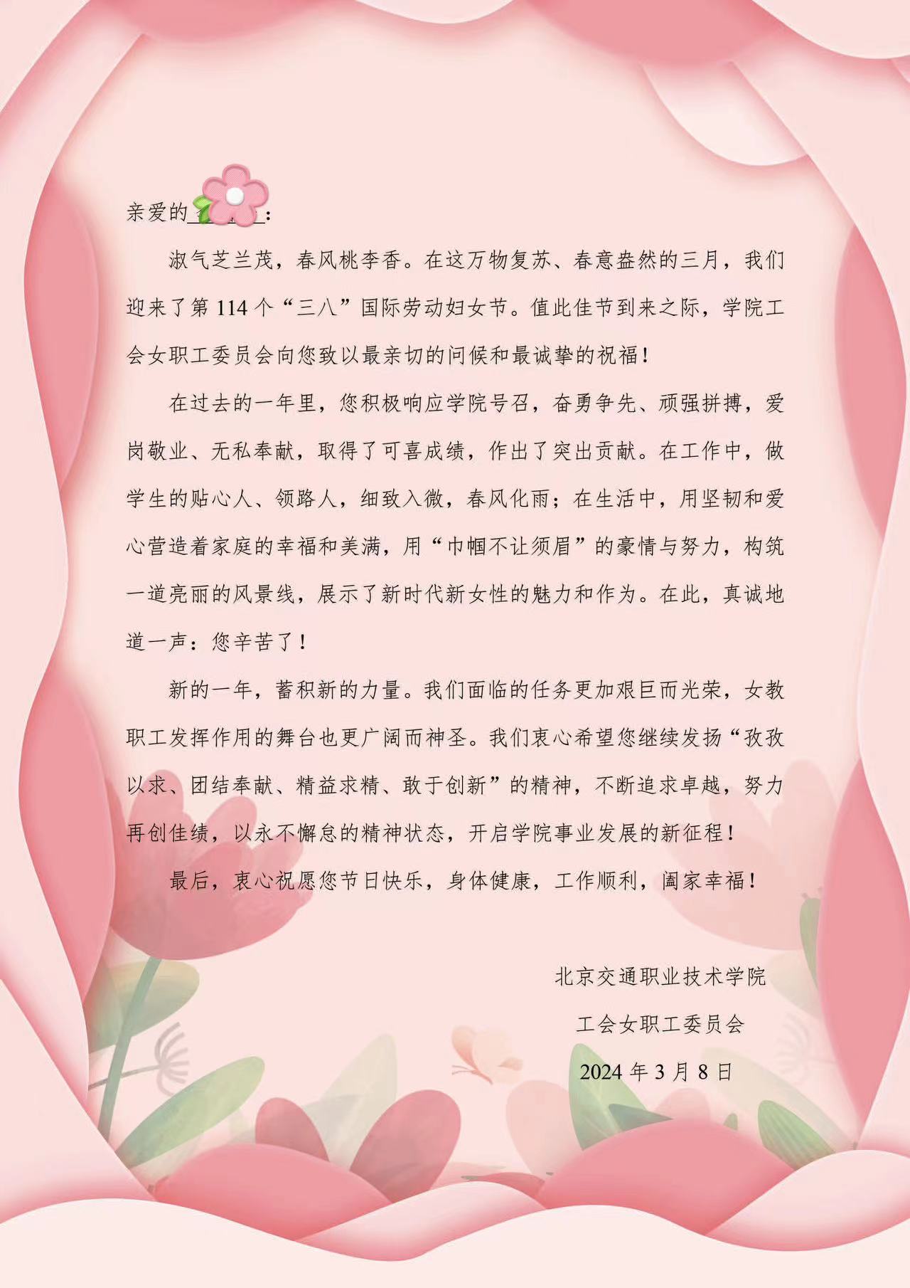 風采展開展的同時,工會女職工委員會也為學院全體女職工送上了一封節日賀信。