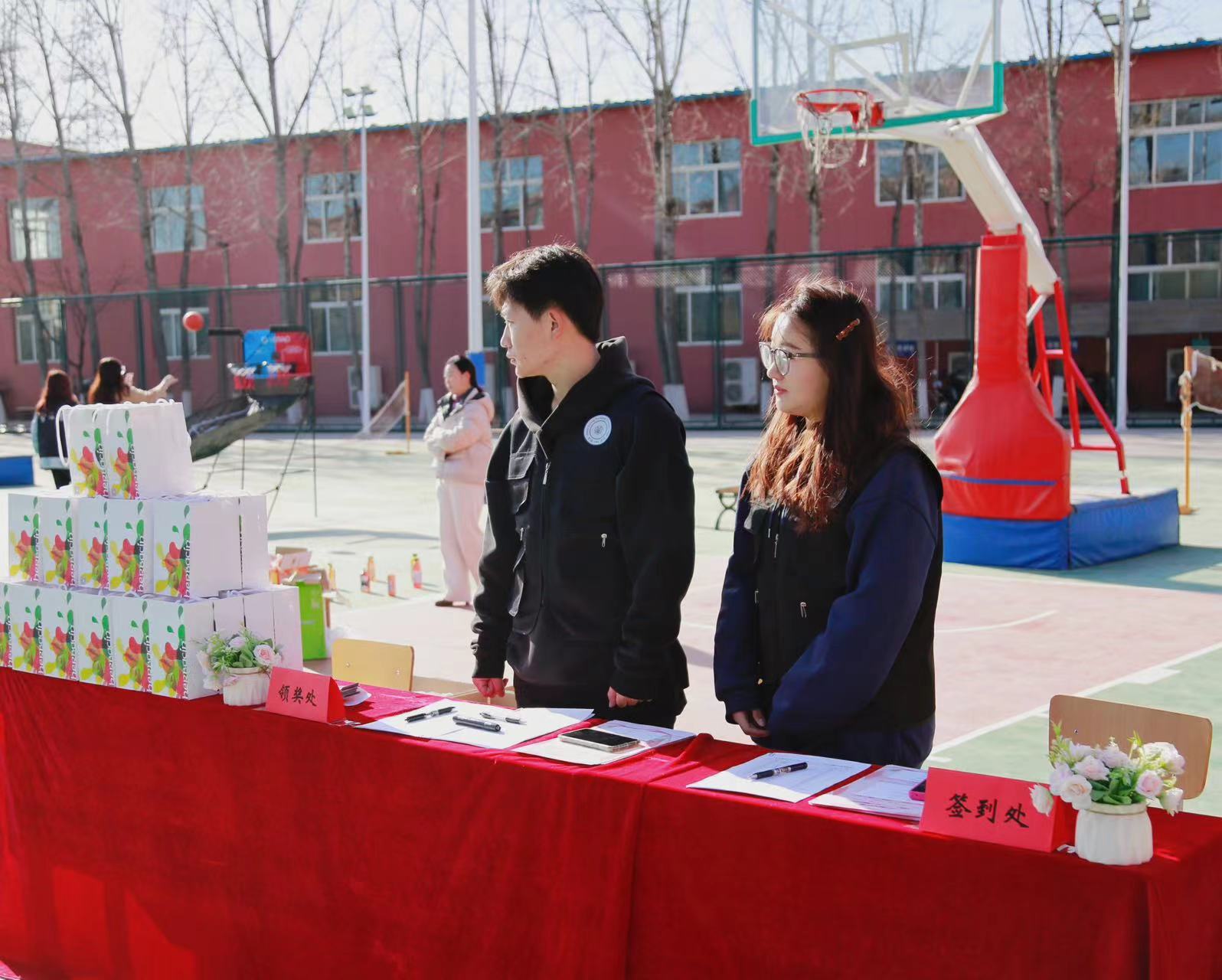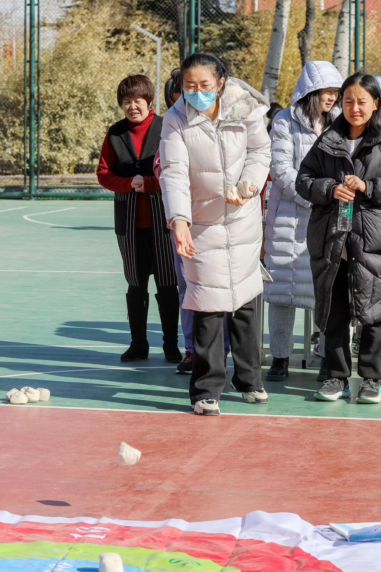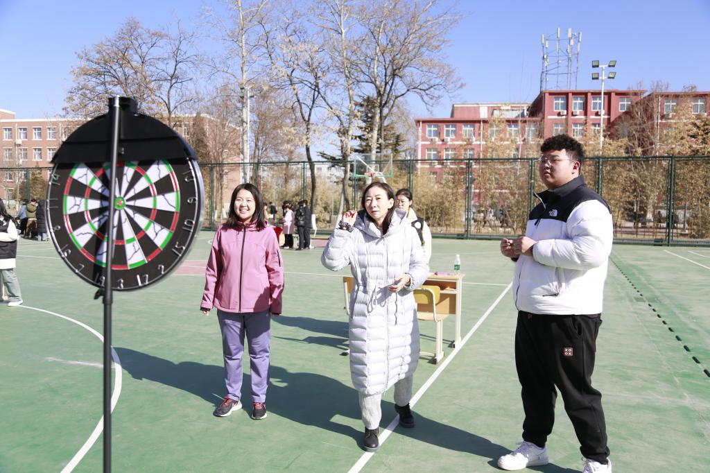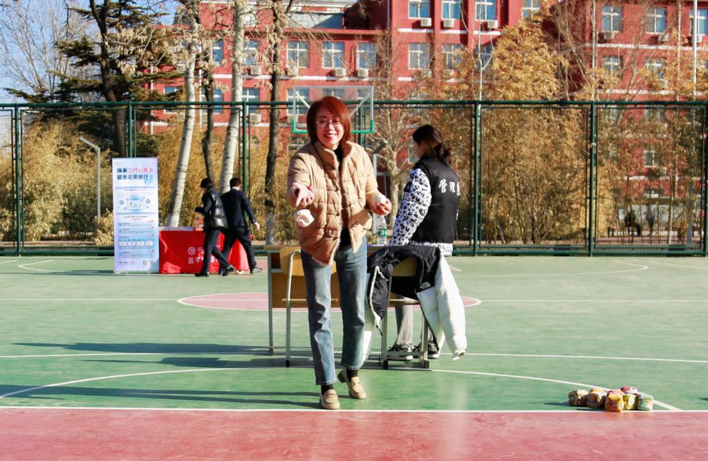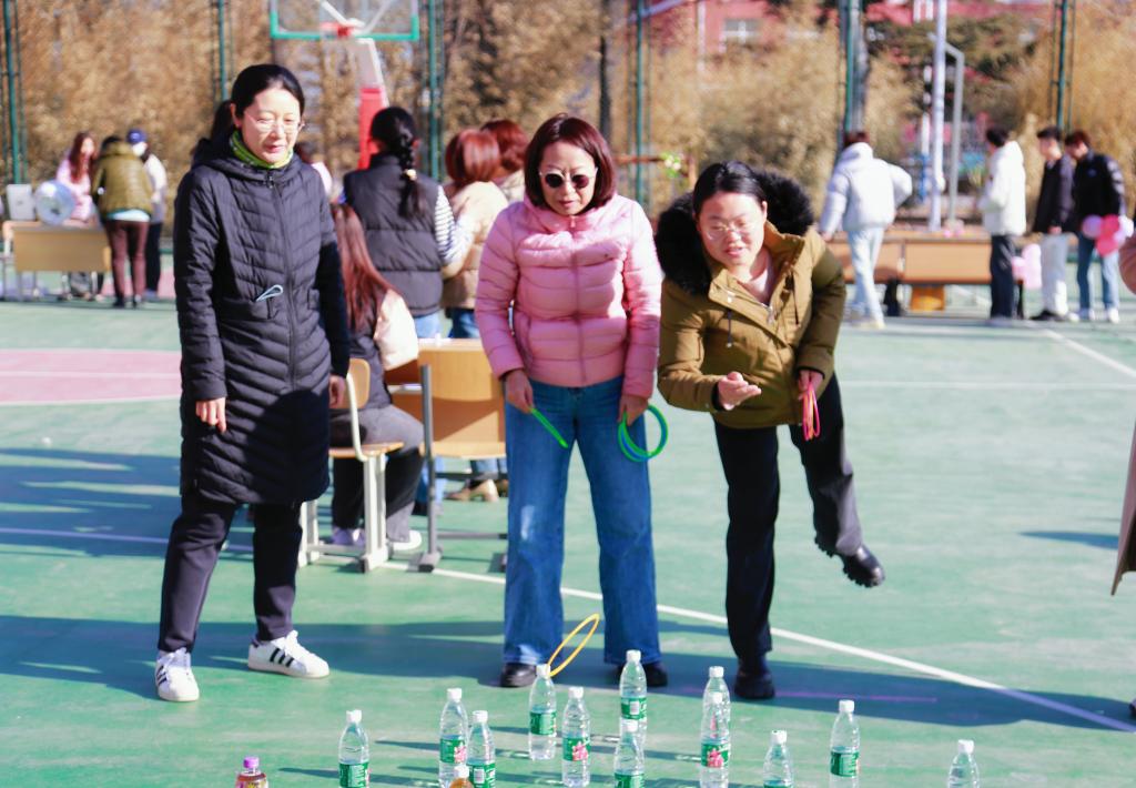 必選項目設有“沙包擲準”“快樂旋風”“灌籃高手”“扔鏢高手”“歡樂套圈”五項必選項目,每人完成三項以上即可到領獎處領取紀念品一份。在活動中,老師們精神抖擻,神情專注,氣氛緊張熱烈。
