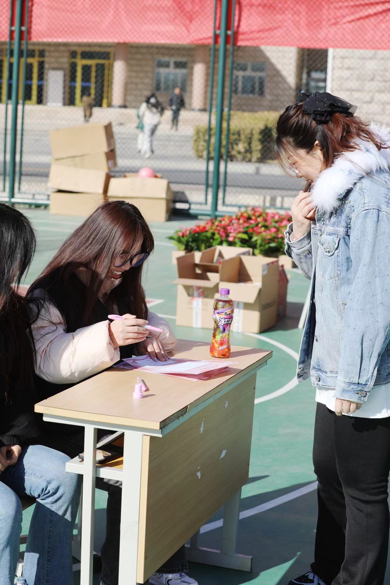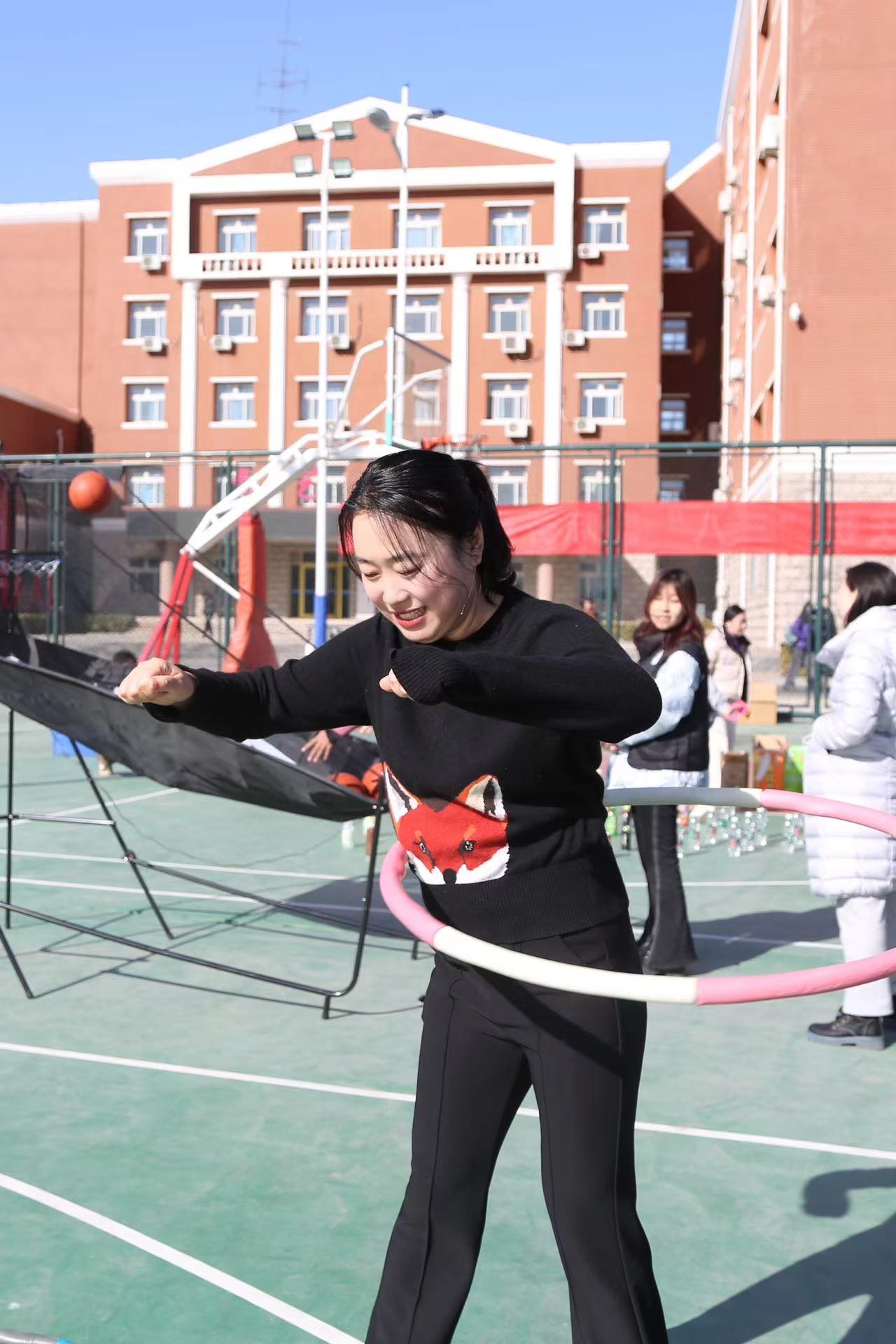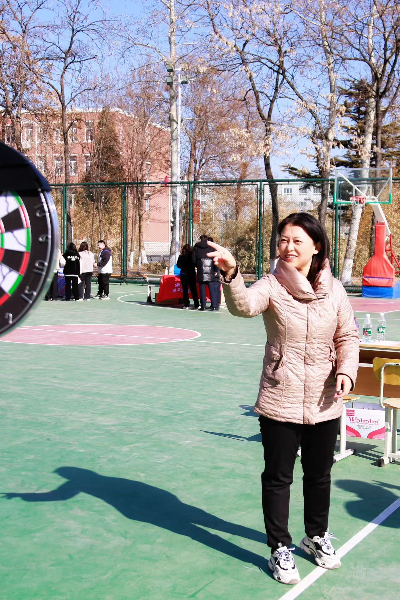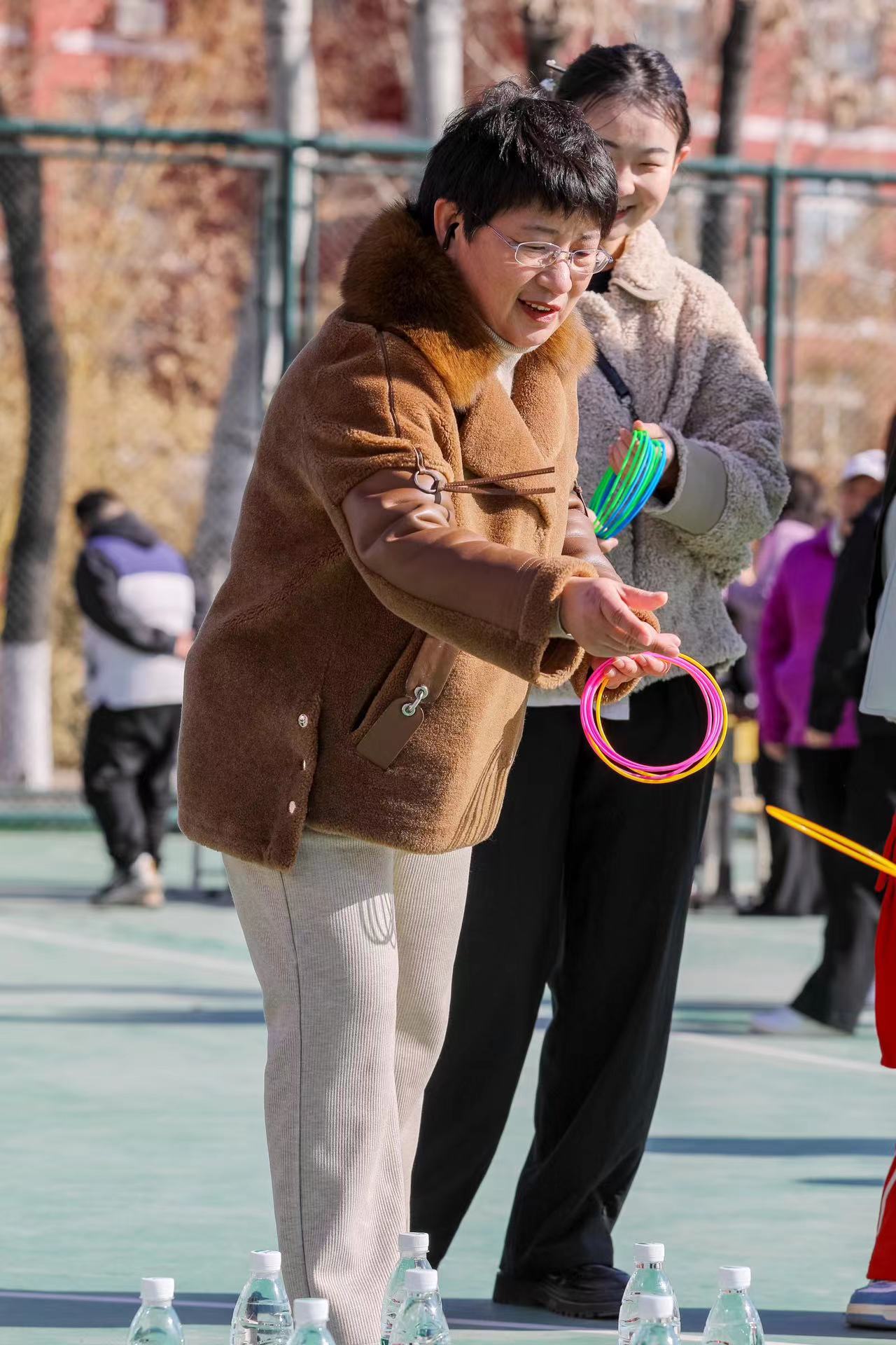 必選項目設有“沙包擲準”“快樂旋風”“灌籃高手”“扔鏢高手”“歡樂套圈”五項必選項目,每人完成三項以上即可到領獎處領取紀念品一份。在活動中,老師們精神抖擻,神情專注,氣氛緊張熱烈。