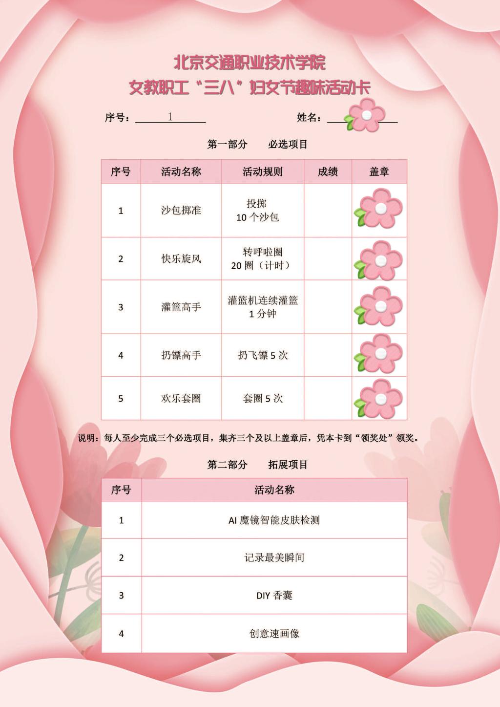 趣味活動分為必選項目和拓展項目。