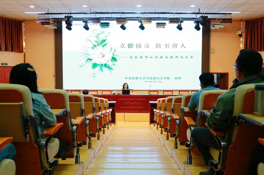 4月17日,學院工會組織開展了“立師德 塑師表 鑄師魂”師德師風教育大講堂活動。活動旨在進一步提高學院教師隊伍職業(yè)道德修養(yǎng),扎實推進師德師風建設措施在全院范圍內落地見效。此次活動邀請到中央民族大學馬克思主義學院黨委書記孫英教授主講。