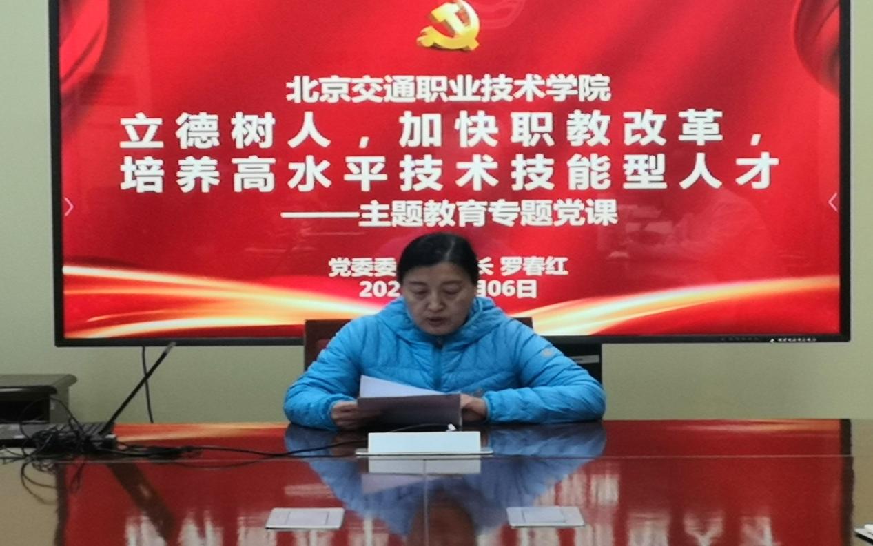2023年11月6日,學(xué)院黨委委員副院長(zhǎng)羅春紅同志以“立德樹(shù)人,加快職教改革,培養(yǎng)高水平技術(shù)技能型人才”主題,在會(huì)議室為學(xué)院教學(xué)系統(tǒng)黨員干部講黨課,教務(wù)處黨支部全體黨員及各系部主任等黨員干部參加。