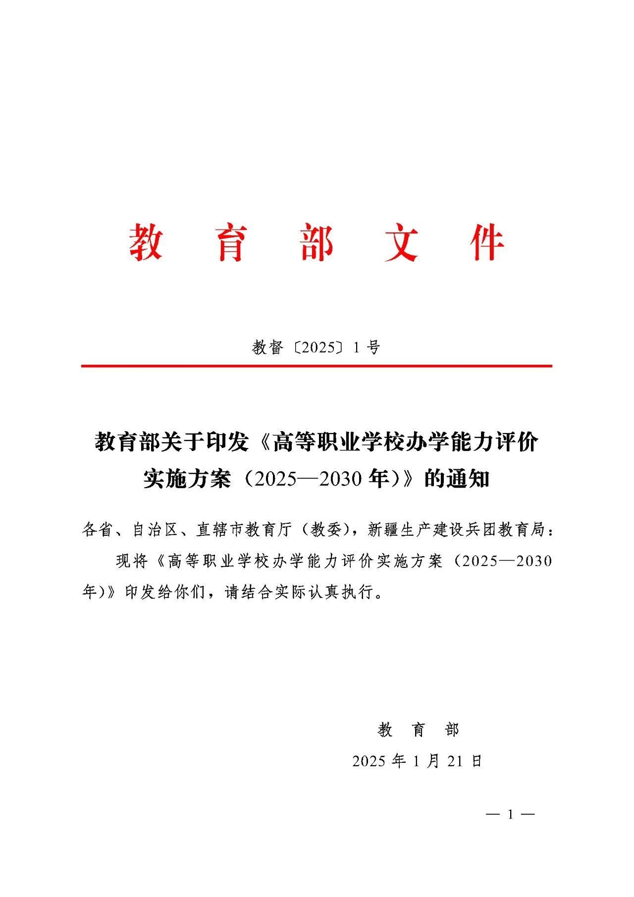 點擊查看:教育部關于印發《高等職業學校辦學能力評價實施方案(2025-2030年)》的通知