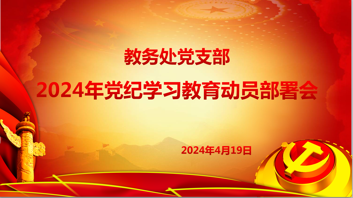 為深入學習貫徹新修訂的《中國共產黨紀律處分條例》(以下簡稱《條例》),落實中央、市委、區委關于開展黨紀學習教育的部署要求,按照學院黨委《開展黨紀學習教育工作方案》的安排,4月19日下午,教務處黨支部組織召開全體黨員召開黨紀學習教育動員部署會,并開展黨紀學習。