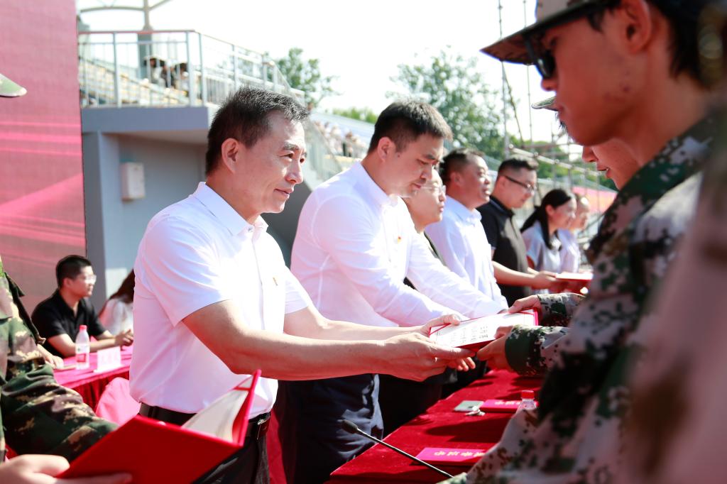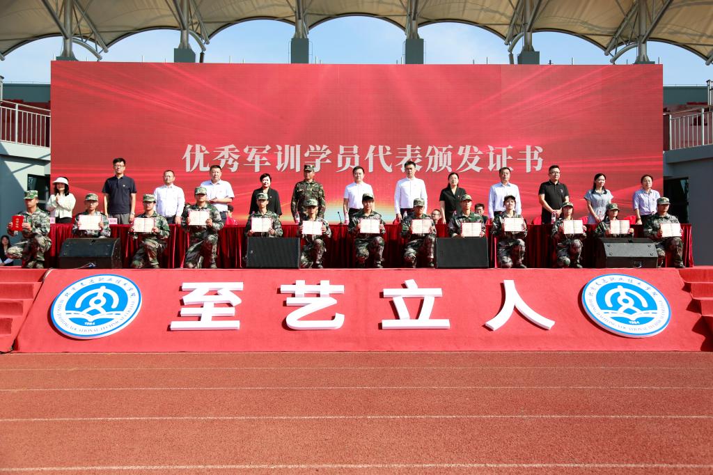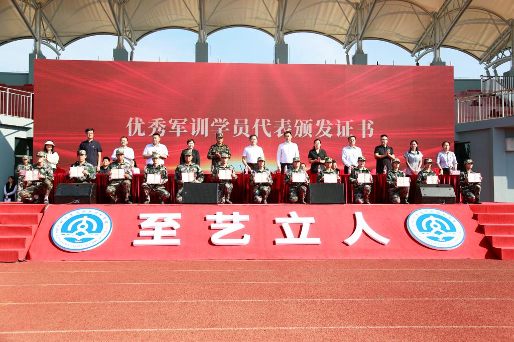 隨后,軍訓帶隊領導姚小龍做軍訓總結并宣讀優秀軍訓學員表彰決定。主席臺領導為優秀軍訓學員代表頒發證書。