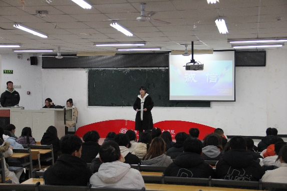 誠信是為人之本。王渺、任雪琦兩位宣傳大使就“困難生身份造假”和“助學貸款還款”兩個問題開展了對于誠信主題的感想分享。王渺同學講述了困難生身份造假會帶來一系列不良的后果。并舉例相關事件加強同學們對資助誠信的印象,借此例子叮囑同學們要誠實守信,遵守法律法規和社會公德。緊接著任雪琦同學為大家分享了助學貸款的還款方式及注意事項,并且提醒同學們要按照約定誠信還款,保持良好的信用記錄,以便在未來獲得更好的信用評級,為自己夢想保駕護航。