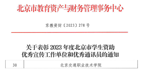 2023年度,學院資助管理中心聚焦資助育人的初心和使命,注重資助宣傳體系與政策落實體系有機融合,深入挖掘學生資助工作在制度完善、規范管理和精準資助等方面的舉措和成效,學生資助傳播能力、價值引領和激勵教育功能進一步提升,為學院資助工作樹立了新標準新意識。通過不懈的努力,學院獲評本年度“北京市學生資助優秀宣傳工作單位”。