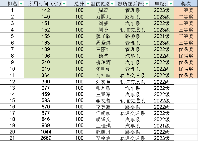 在同學們的共同努力下,我院有21名同學在初賽中獲得滿分,90-100分的同學有56人。