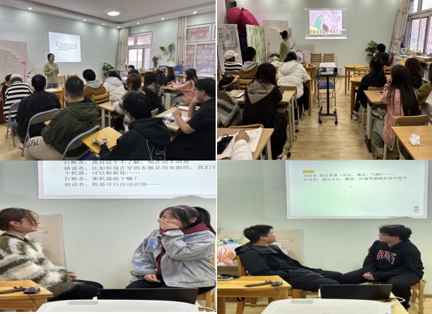 培訓(xùn)伊始,張老師通過一組數(shù)據(jù)引發(fā)了同學(xué)們的思考,與同學(xué)們共同剖析了春季學(xué)生心理健康問題高發(fā)的原因,提醒心理委員,做一個溫暖的傾聽者,用真誠和關(guān)愛去傾聽同學(xué)們的心聲。接著,張老師詳細(xì)介紹了朋輩互助理論、傾聽反應(yīng)技術(shù)、心理危機的關(guān)注與識別以及新學(xué)期工作任務(wù)。培訓(xùn)將理論與實踐相結(jié)合,通過角色扮演、游戲互動使心理委員對耐心主動傾聽、言語跟隨、復(fù)述和情感反映等技術(shù)有了深刻的理解。張夢元老師強調(diào),來求助的同學(xué)是他們自己的主體和負(fù)責(zé)人,心理委員能做的就是輔助對方,希望每一位心理委員都能成為一名合格的傾聽者和助人者。