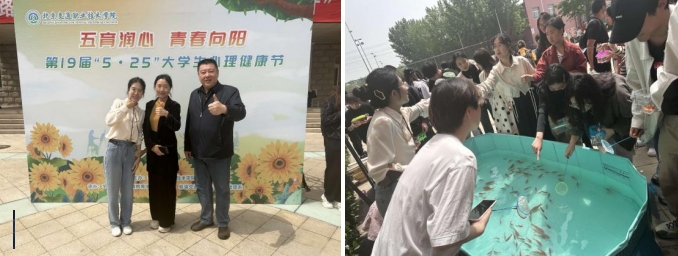 為深入貫徹落實教育部等十七部門關于《全面加強和改進新時代學生心理健康工作專項行動計劃(2023—2025 年)》和北京市教育工作委員會《關于優化提升北京高校學生心理健康工作的行動方案(2023—2025年)》等文件要求,推動五育融合促進心理健康,進一步提升我院心理健康工作實效,提高大學生心理素質水平,同時為校慶營造濃厚校園文化氛圍,4月25日中午,由學生處心理健康教育中心主辦、心理健康協會承辦的第19屆“5·25”大學生心理健康節開幕式暨心理游園會在教一樓門前舉行。本次活動以“五育潤心,青春向陽”為主題,旨在幫助同學們放松心情、釋放壓力、補充精神能量,引發大學生對心理健康的關注,傳播青春正能量。