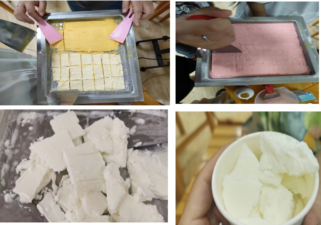 心理健康協(xié)會(huì)的志愿者向同學(xué)們介紹了炒酸奶需要的材料、工具以及方法。通過(guò)牛奶、果味酸奶粉、原味酸奶等材料調(diào)配,現(xiàn)場(chǎng)DIY體驗(yàn)讓每一份親自調(diào)味出的“甜品”都有自己獨(dú)特的味道。在志愿者的指導(dǎo)下,同學(xué)們們認(rèn)真地?cái)[放著自己的炒酸奶造型,大膽地展示著自己的創(chuàng)意,酸甜可口的炒酸奶制作非常成功。大家都紛紛表示想要“續(xù)杯”。一句“我要再來(lái)一份!”讓快樂(lè)延續(xù),共度清涼一夏。
