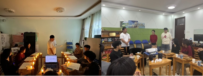 活動籌備期,心理健康協會的同學進行了內部試測,在音效、燈光、劇本配合多個方面充分準備。活動正式開始前,協會志愿者布置場地、為參與者準備了熱水、牛奶,提供暖心服務。活動正式開始,隨著劇本的推進,穿越浩蕩時空,活動參與者從近現代到清代再追溯到宋代,每個角色背后的歷史原型一次再次的躍然重現。不論是戰士家國的情懷、堅持與信仰,還是親情愛情無私大愛,每個人都是敦煌千年的守望者。雖然每個角色身份不同,立場不同,但參與者都很快帶入千年的歷史,進入角色,感受了先人曾經左右為難的抉擇與千年的文化傳承,一覽歷史中的滄桑巨變與盛世繁華。