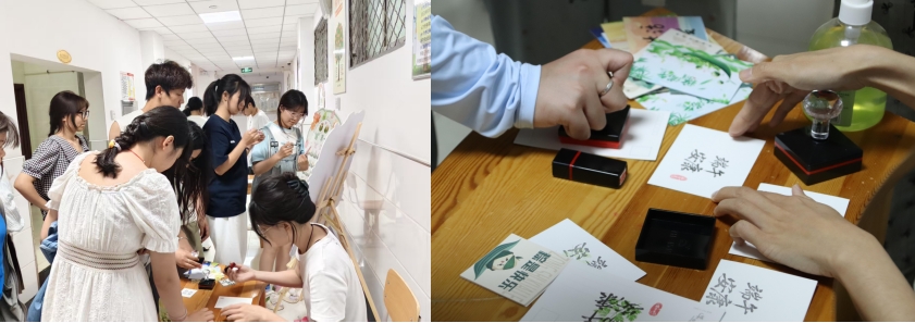 活動還未開始,102教室門口早已熱鬧非凡。小粽子展板成為大家盡情揮灑創意的畫布。同學們手持畫筆,或工整書寫、或隨性涂鴉,人形展板也成為火熱拍照打卡點,更有精美的端午明信片更是備受青睞,大家拿著端午限定節日印章,印在明信片上,把對端午的美好期許都融入其中。