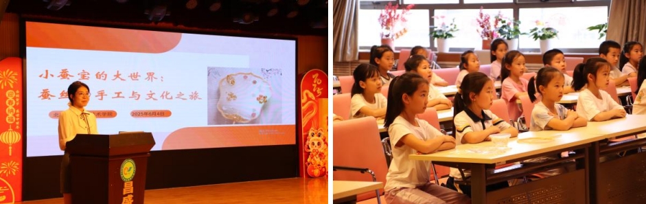 為積極響應服務區域號召,豐富青少年的文化教育生活,促進其身心健康全面發展,6 月 4 日下午 1:30 分,我院心理健康教育中心主任張夢元和高雪源老師帶領六名經過培訓與選拔的學生志愿者赴昌盛園小學,為二年級八個班的同學們開展以“小蠶寶的大世界——蠶絲扇手工與文化之旅”為主題的送課到校服務活動。