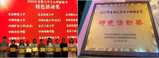 為深入貫徹落實黨的二十大精神,落實教育部等十七部門《全面加強和改進新時代學生心理健康工作專項行動計劃(2023-2025)》、市委教育工委《關于優化提升北京高校學生心理健康工作的行動方案(2023-2025)》等文件要求,推動五育融合促進心理健康的理念轉化為實際行動,進一步提升我院心理健康工作實效,提高大學生心理素質水平,學院在市委教育工委指導下于4月至6月舉辦以“美潤心田,AI 育未來”為主題的2025年大學生心理健康季系列活動。心理中心加強校級統籌,集中各學院優勢資源,廣泛發動、精心組織,在廣大師生的共同努力下,我院憑借在心理健康季活動中出色的組織與創新,獲評“特色活動獎”,多名學生榮獲市級獎項,充分展現了學院在心理健康教育工作中的持續努力和積極成果。