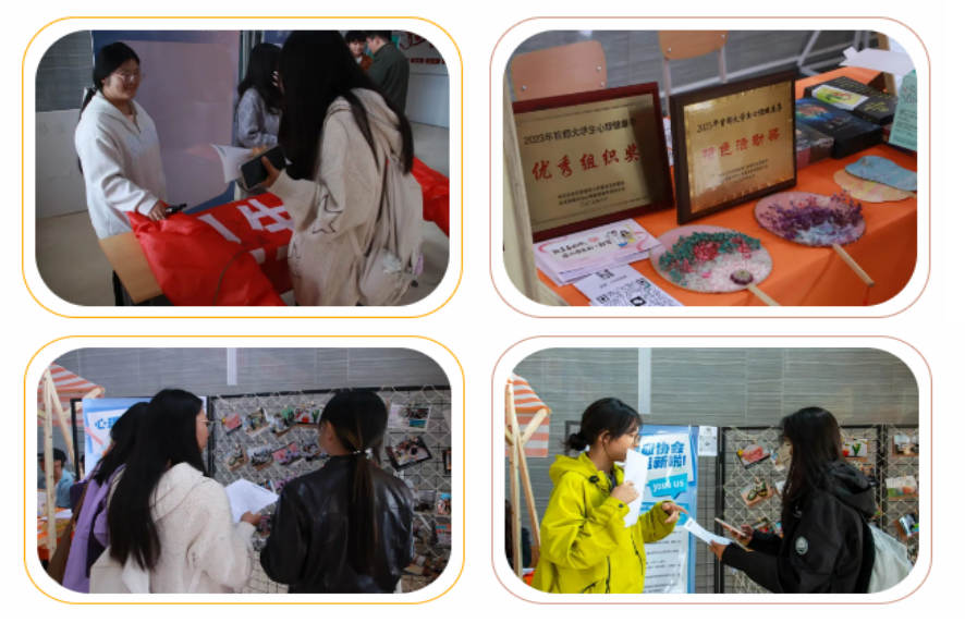“撕掉‘誤解標簽’” 環節則直擊心理健康領域的痛點問題。社團提前制作了寫有 “心理有問題就是矯情”“看心理醫生很丟人”“只有心理疾病患者才需要心理健康服務” 等常見誤解標簽的展板,邀請同學們親手撕掉這些標簽,同時在旁邊的留言區寫下自己對心理健康的正確認知和暖心寄語。同學們積極參與,在撕掉標簽的過程中,也打破了對心理健康的偏見,現場的寄語墻上貼滿了溫暖的文字,傳遞出對心理健康的正確態度和正能量。在簽語驚喜區,頤和園文創上上簽餅干和港式風情幸運餅干深受同學們喜愛。每一塊餅干里都包裹著一張寫有暖心祝福或有趣的簽語紙條,同學們在品嘗美味餅干的同時,也收獲了意外的驚喜。大家拿著餅干和簽語,臉上洋溢著開心的笑容,現場充滿了溫馨歡樂的氛圍。為了更好地了解同學們的需求,社團還設置了活動建議收集區。現場擺放了投票板,列出了多種活動形式,同學們可以為自己喜歡的活動投票,也可以在建議欄寫下自己希望社團舉辦的其他活動。這一環節充分體現了社團以同學為中心的理念,為社團后續活動的策劃與開展提供了重要參考。活動現場,社團志愿者熱情地為前來咨詢的同學們解答關于社團組織架構、活動安排、會員權益等方面的問題,耐心細致地介紹社團的宗旨和特色。不少同學在深入了解后,當場填寫了報名表,希望能加入心理健康協會,成為其中的一員,為推動校園心理健康事業發展貢獻自己的力量。