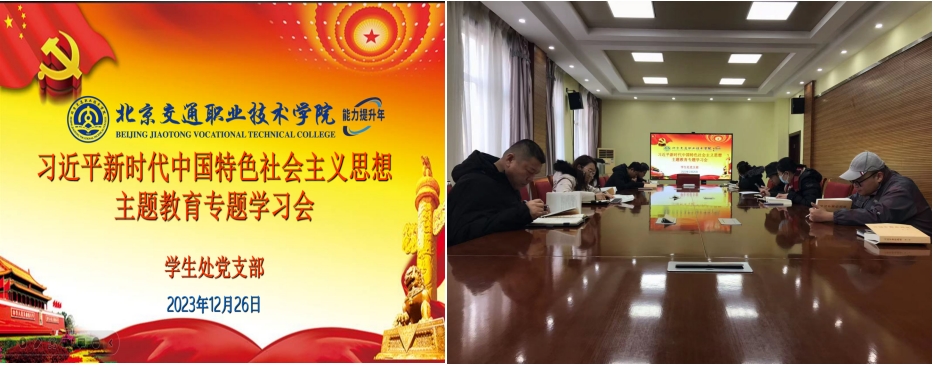 為深入學習貫徹習近平新時代中國特色社會主義思想,落實學院黨委決策部署,加強理論學習、厚實理論功底、提高理論素養、促進能力提升,切實貫徹新發展理念,樹立“綠水青山就是金山銀山”的強烈意識,努力走向社會主義生態文明新時代。按照學生處黨支部既定學習計劃,2023年12月26日上午,學生處黨支部在辦公樓一層會議室召開專題學習會,支部全體黨員參會。