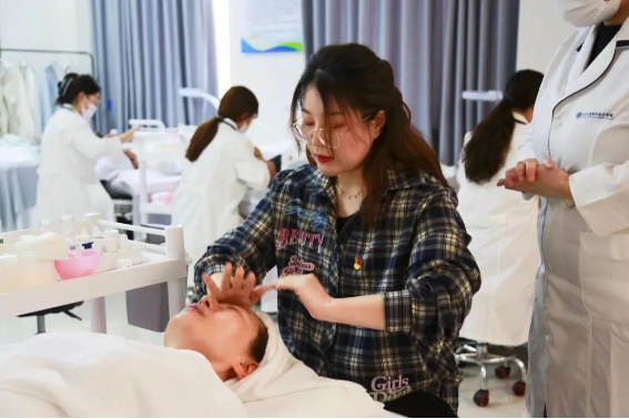 座談交流結(jié)束后,與會人員移步至三層皮膚管理教學(xué)實踐中心,管理系化妝品專業(yè)的師生為學(xué)生處黨支部的女黨員們提供了專業(yè)的面部皮膚護理服務(wù)。體驗結(jié)束后,大家紛紛根據(jù)自身的感受提出了寶貴的意見和建議,旨在共同提升化妝品專業(yè)的服務(wù)水平。此次護膚體驗不僅增強了兩個支部之間的交流與合作,還為化妝品專業(yè)的學(xué)生們提供了一次難得的實踐機會。