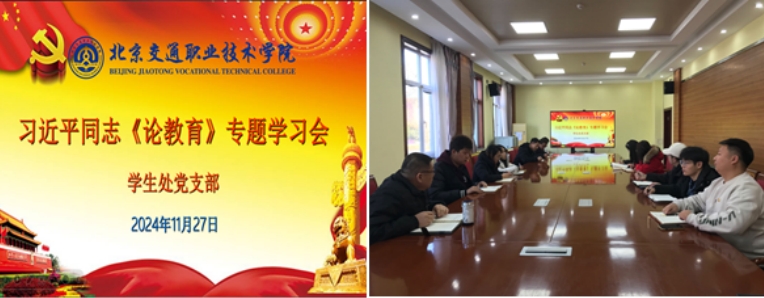 為全面貫徹黨的教育方針,深刻認識并做好習近平總書記《論教育》學習宣傳工作,與學習貫徹落實全國教育大會精神貫通起來,引導支部全體黨員深切體會習近平總書記對教育工作的重視關懷和殷切期望,2024年11月27日上午,學生處黨支部在辦公樓一層會議室組織召開專題學習教育。