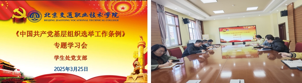 按照學院《關于做好2025年基層黨支部換屆選舉工作實施方案》相關要求,2025年3月25日,學生處黨支部在辦公樓一層會議室開展主題黨日活動,活動主題為“學深悟透《中國共產黨基層組織選舉工作條例》——錘煉堅強黨性,嚴守換屆紀律”。