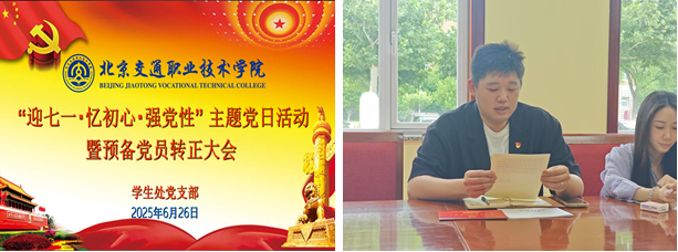 為慶祝中國共產(chǎn)黨成立104周年,深入學(xué)習(xí)貫徹習(xí)近平新時代中國特色社會主義思想,進(jìn)一步增強(qiáng)黨支部的凝聚力和戰(zhàn)斗力,做好發(fā)展黨員工作,增強(qiáng)支部黨員隊伍的生機(jī)與活力, 2025年6月26日上午,學(xué)生處黨支部在辦公樓一層會議室組織開展“迎七一·憶初心·強(qiáng)黨性” 主題黨日活動暨預(yù)備黨員轉(zhuǎn)正大會。