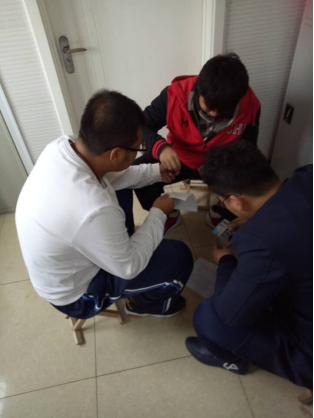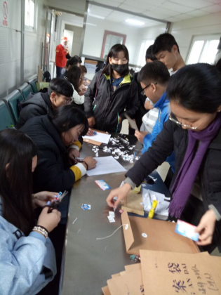 到了德勝門公交總站以后,大家領取了材料之后很快的進入了工作狀態。按照之前的分組,一部分人寫學生信息以及修剪相片,一部分人粘貼防偽標簽。