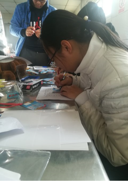 到了德勝門公交總站以后,大家首先領(lǐng)取了卡片等材料,之后很快的進(jìn)入了工作狀態(tài)。按照之前的分組,一部分人登記填寫學(xué)生信息卡以及修剪和粘貼相片,一部分同學(xué)粘貼防偽標(biāo)簽、加蓋印章、粘貼公交卡保護(hù)膜。最終,在大家的共同努力下,本次共為我院學(xué)生辦理公交卡338張,辦理過程中現(xiàn)金、資料及公交卡無一遺漏和錯(cuò)誤。