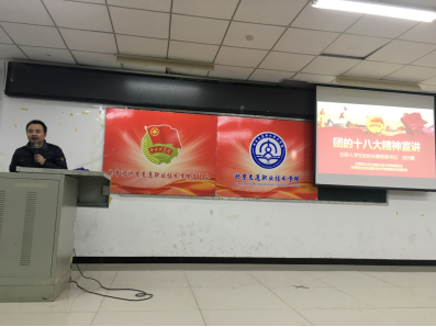 為團結動員廣大團員青年深入學習團的十八大精神,決勝全面建成小康社會、實現中華民族偉大復興的中國夢,2018年12月13日16時,在教一樓122教室我院團委組織部組織開展了團的十八大精神主題宣講活動,由學生處處長兼團委書記劉興鶴老師為學校團員青年們全面解讀團的十八大精神。