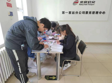 現場辦理過程中李老師和6名志愿者分工明確,按照辦理公交卡流程的八個環節:蓋校章、填寫學生信息、修剪粘貼照片、粘貼防偽標簽、蓋公交卡印章、粘貼卡片、粘貼公交卡保護膜、整理檢查裝入信封有序進行,團隊相互配合,井然有序,高效的將100張公交卡全部辦理完畢。最后檢查無誤后,將公交卡分別按專業班級重新放回信封中,以方便將公交卡發放到各同學手中。辦理結束后并將工作中產生的垃圾一一清理,保持了公交總站辦理場所的干凈整潔。