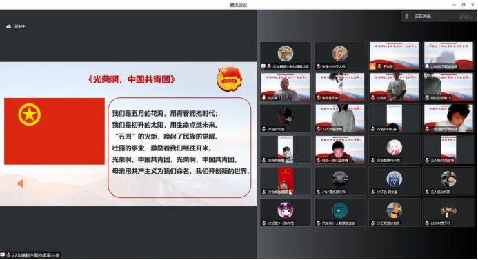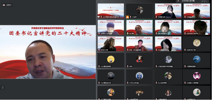 為宣傳學習二十大講話精神,充分發(fā)揮基層團組織的積極性和主動性,提高青年學生的思想認識水平,我院于2022年12月11日晚18:00在騰訊會議組織召開本學期第五期主題團課——《黨的二十大精神宣講活動暨團委書記講團課》。此次團課學習特別邀請了我院黨委委員、學生處處長兼團委書記劉興鶴老師為大家進行宣講。此次會議的參會人員主要有2022級各班級團支書、班長;2021級各班級團支書;各系主席團、團總支成員;院團委各組織、院學生會主席團、各部門負責人參會,同時開放了120個公共名額面對全體青年學生開放學習。