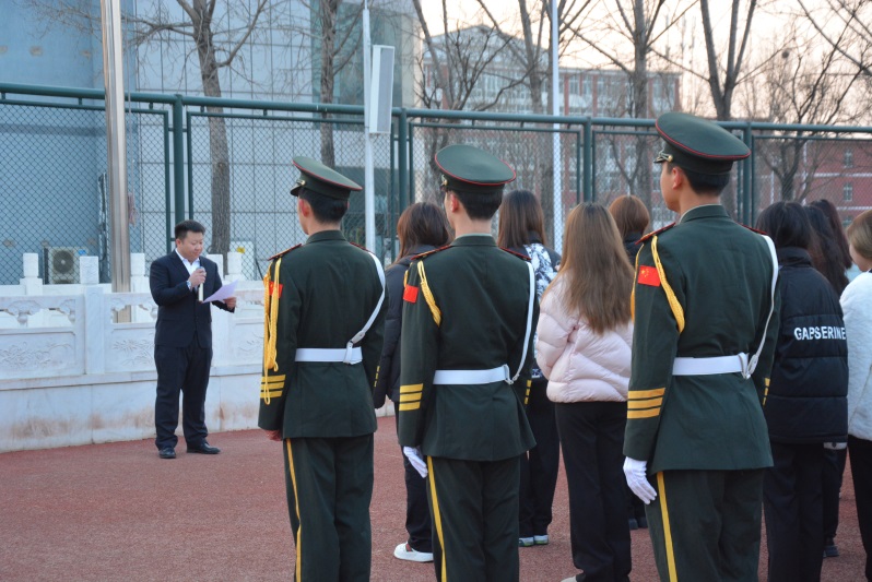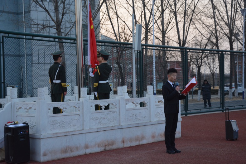 上午七時,升旗儀式正式開始。國旗班在陽光的照耀下,亮出堅定的目光,五星紅旗冉冉升起,迎風飄揚,學院師生代表面向國旗行注目禮,齊唱中華人民共和國國歌,深懷對祖國最誠摯的熱愛和崇高的敬意。