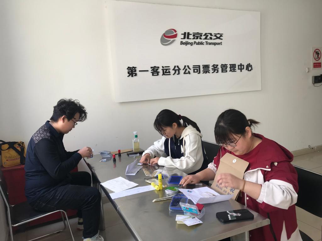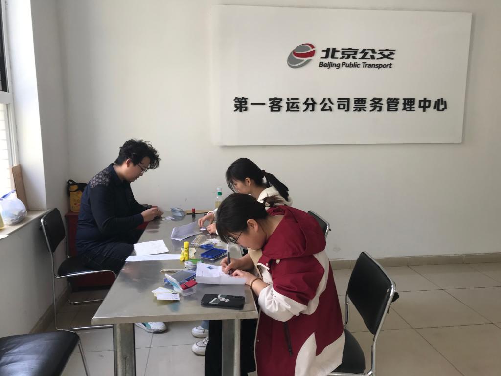 現場辦理過程中志愿者分工明確,按照辦理公交卡流程有序進行,團隊相互配合,井然有序,高效地將54張公交卡辦理完畢。經檢查無誤后將公交卡分別按專業班級進行分別存放,以便將公交卡發放到各同學手中。辦理結束后并將辦理過程產生的垃圾一一清理,保持了公交總站辦理場所的干凈整潔。