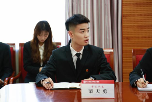 會上,團委書記代宏博強調,學生干部要牢記習近平總書記“做青年友,不做青年‘官’,多為青年計,少為自己謀”的囑托,并明確了團學干部的地位、職能及要求。隨后,就“如何加強團學干部自身建設”和“如何深化團學工作與學院整體發展規劃相融合”兩個方面,提出重要戰略部署。