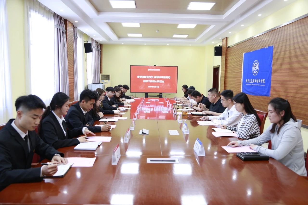 為加強北京交通職業技術學院團學干部隊伍建設,提升團學骨干綜合素質,5月15日下午,學院團委在辦公樓一層會議室召開“青春挺膺有作為 譜寫華章建新功”團日活動暨團學干部談心談話會。學院黨委副書記、副院長李大泳,學生處處長董帥,團委書記代宏博,各系團總支書記及22級、23級部分學生干部參加本次會議。
