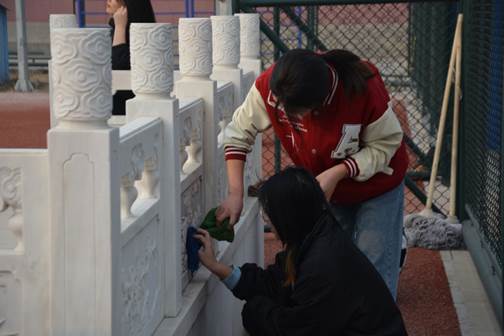 國旗臺作為完成升國旗儀式這一神圣任務的一個重要組成部分,從一定程度上講,維護國旗臺的莊嚴就是維護國旗的尊嚴。本次活動主要清潔國旗臺下的石制圍欄,擦拭旗桿灰塵泥污,并對升旗臺周邊的衛生進行打掃。隊員們分工明確,默契配合,擦石欄、撿垃圾、接換水、拖地面,各項工作有條不紊的進行,隊員們以實際行動踐行雷鋒精神,同樣詮釋他們對五星紅旗無限的熱愛和崇高的敬意!