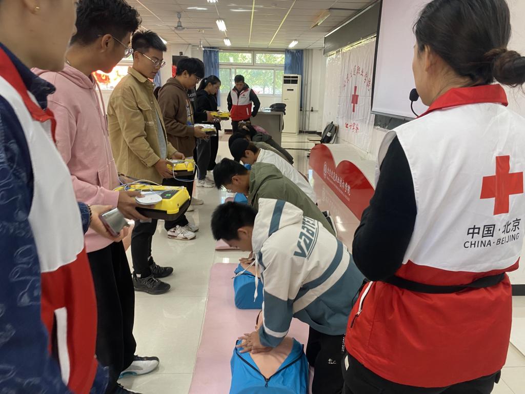 應急知識記心間,健康校園每一天。為打造安全健康校園,加強大學生生命安全教育,增強急救意識普及應急救護知識,提高安全防范意識和應急處置能力。2023年10月21日上午,北京交通職業技術學院團委、學院紅十字會聯合學院總務處醫務室特邀昌平區紅十字會到我院開展心肺復蘇(CPR)和自動體外除顫儀(AED)使用學習和急救知識培訓活動。旨在加強學生們的自我保護意識,提高應急救護知識、自救互救技能以及緊急情況的處理能力,大力弘揚紅十字會精神。