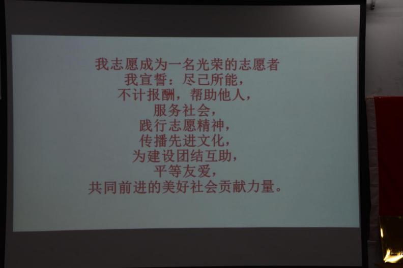 “我志愿成為一名光榮的志愿者。我宣誓:盡己所能,不計報酬,幫助他人,服務社會,踐行志愿精神,傳播先進文化,為建設團結互助,平等友愛,共同前進的美好社會貢獻力量。”全體志愿者現場宣誓并認真的填寫志愿表