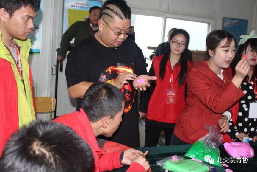 隨著學(xué)院踐行“學(xué)總書記講話做合格共青團(tuán)員”教育主題實(shí)踐活動(dòng)的開展,為更好發(fā)揮團(tuán)員力量和志愿者服務(wù)精神,在第二十六個(gè)全國(guó)助殘日來(lái)臨之際,宣傳學(xué)雷鋒精神,北京交通職業(yè)技術(shù)學(xué)院青年志愿者協(xié)會(huì)來(lái)到昌平區(qū)城南溫馨家園康復(fù)站,與那里的殘障人員度過(guò)了一個(gè)快樂(lè)的日子,知名藝人有“舞王”之稱的王迪老師也受邀參與了活動(dòng)。本次活動(dòng),也受到了昌平電視臺(tái)和報(bào)社相關(guān)媒體的高度關(guān)注。