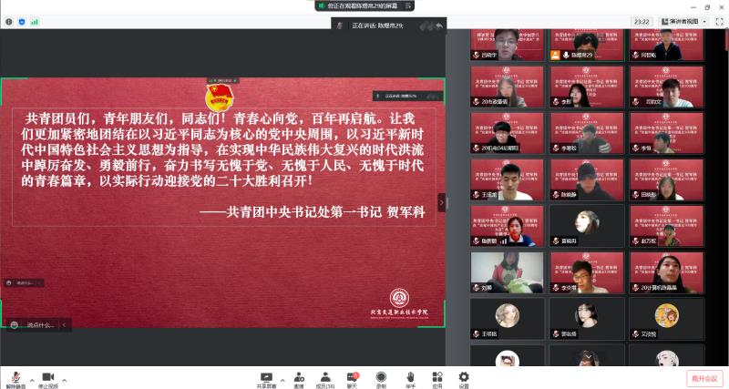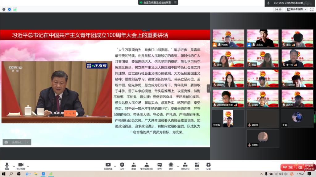 為學習貫徹習近平總書記“慶祝中國共青團100周年大會”重要講話精神,帶領全院做好會議精神的踐行者、學習者,深刻體會總書記重要講話精神,我院團委組織開展會議精神熱議專題學習系列活動,組織團學干部通過線上學習的方式又共同學習共青團中央書記處第一書記賀軍科同志在慶祝中國共產主義青年團成立100周年大會上的發言。