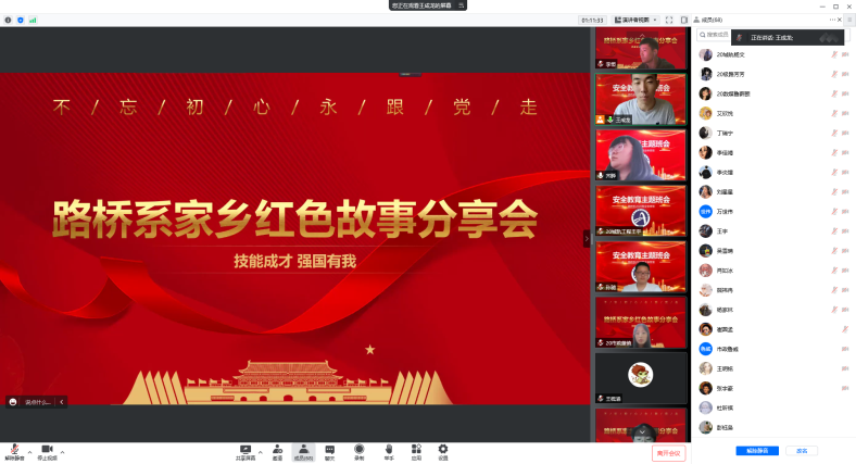 通過班會分享家鄉紅色故事,帶動全體同學對自己家鄉的紅色文化進行了解和學習,更加感受到信仰的力量,也更加堅定了我院學生的愛國心、強國志、報國情,增強對黨、對祖國、對家鄉、對人民、對社會主義的深厚感情,樹立和堅定了自信。不忘初心、牢記使命,結合“技能成才強國有我”主題教育活動,引導同學們扎實學好技能本領,努力成為大國工匠,為實現中華民族偉大復興而不懈奮斗。