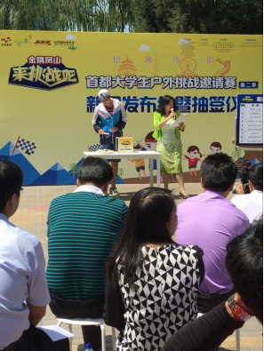 2016年5月24日上午,我院參賽隊員代表陳佳煒同學參加在北京國際青年營湖心營地召開的“來挑戰吧”首都大學生戶外挑戰邀請賽(第二季)新聞發布會暨抽簽儀式。