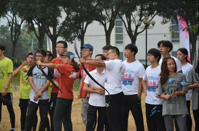 在各項環節中,我院與各高校分組競爭,通過挑戰彈弓射靶、弓箭射靶、定向越野、背包整理,攻防箭等項目,展開了一場智能與體能的激烈較量。