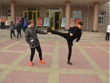 活動(dòng)當(dāng)中,社團(tuán)聯(lián)合會(huì)會(huì)長(zhǎng)劉麗君,副會(huì)長(zhǎng)金岳,副會(huì)長(zhǎng)于李弘逸觀摩并參與了本次活動(dòng)。指點(diǎn)同學(xué)們?nèi)绾握_的踢靶,告訴同學(xué)們姿勢(shì)的重要性,怎樣的姿勢(shì)會(huì)保護(hù)自己,在一定程度上能進(jìn)行自衛(wèi)。